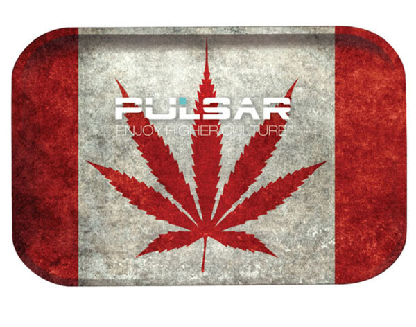 The Pulsar Metal Rolling Tray is 10.5"x6.25" and features a Canadian Flag theme. This tray has rolled edges for strength and safety and colorfast design that never peels or chips.
