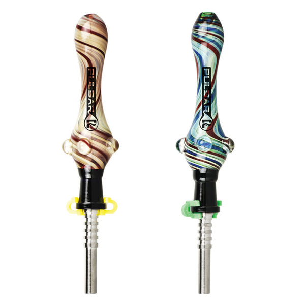 Pulsar Red Ribbon Zen Swirl Glass Dab Straw - 6" HIGHLIGHTS 6 inch glass dab straw Worked stripe design Durable borosilicate glass 10mm female joint 10mm male titanium nail included...